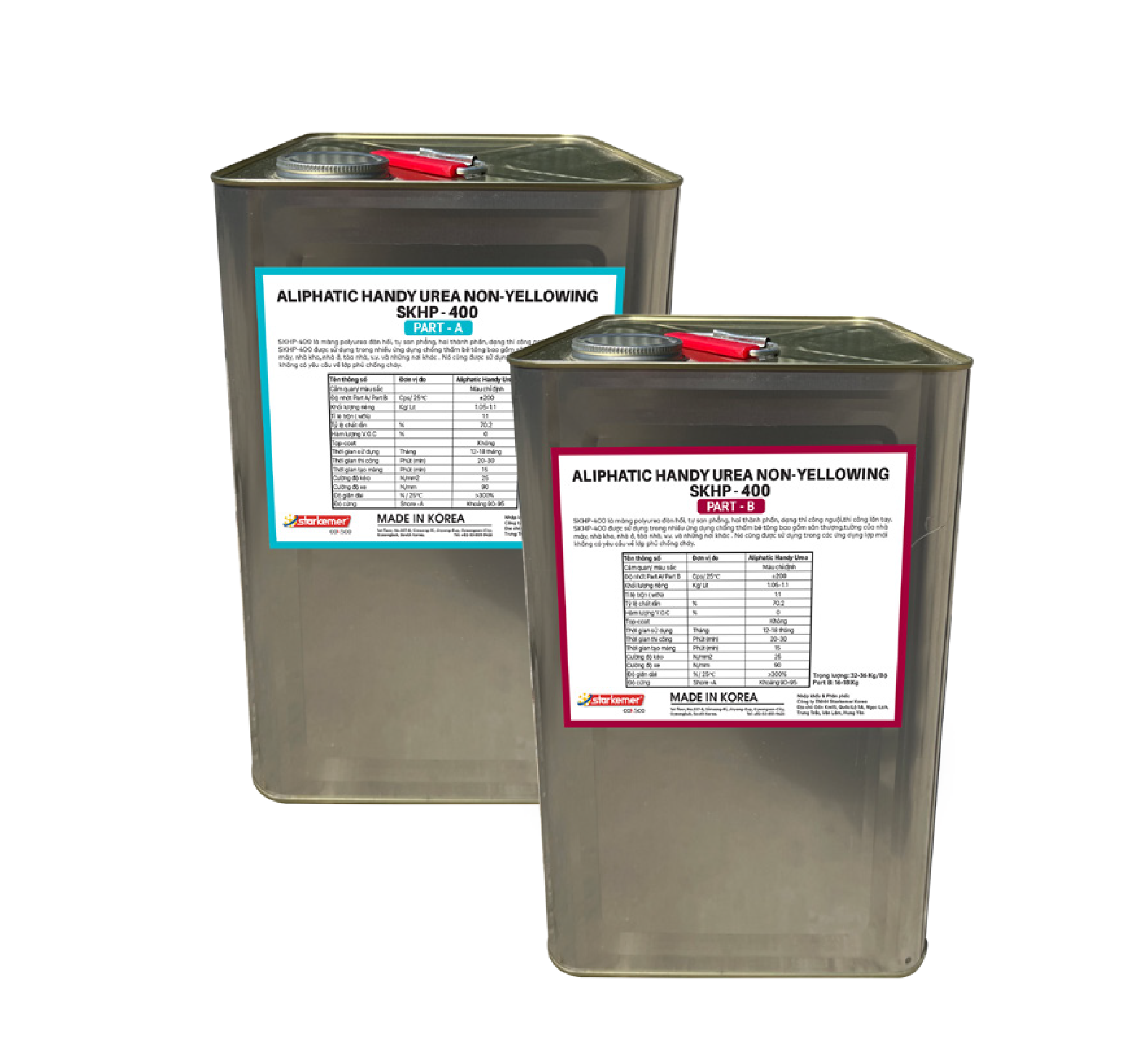 SKHP-400 là hệ thống chất đàn hồi polyurea béo hai thành phần hiệu suất cao. Hệ thống này dựa trên nhựa polyester béo chức năng amin, chất kéo dài chuỗi amin và tiền polyme. Nó cung cấp một màng nguyên khối linh hoạt, bền chắc, đàn hồi với khả năng chống tia UV và chống thấm nước tốt . Nó không chỉ phản xạ tia nhiệt từ ánh sáng mặt trời trong quá trình sơn mà còn ngăn nhiệt truyền vào bên trong, do đó thể hiện hiệu quả cách nhiệt tuyệt vời. Nó có độ bám dính tuyệt vời với bề mặt lớp phủ hiện có, khả năng chống chịu thời tiết và kháng hóa chất. Đây là một lớp phủ cao cấp có thể giảm đáng kể chi phí làm mát/sưởi ấm bằng cách làm cho nhiệt độ bên ngoài khó truyền vào bên trong và đồng thời khó thoát ra ngoài do độ dẫn nhiệt thấp.